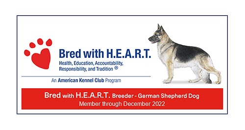 Von Haus Wisen Baker is a prestigious, licensed and insured, reputable, experienced, responsible German Shepherd Dog breeder. Our German Shepherd Puppies get registered with AKC and UScA in USA, SV/VDH in Germany, and FCI Worldwide. Von Haus Wisen Baker German Shepherds is certified by the American Kennel Club as a breeder With H.E.A.R.T. – Health, Education, Accountability, Responsibility, and Tradition! We raise our German Shepherd puppies in house with family and very small breed dogs—our Yorkies—and cook their human quality meals from scratch every day.