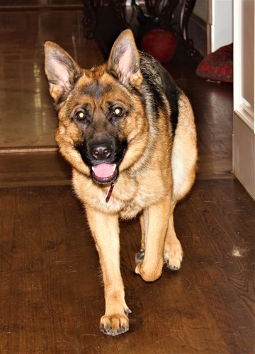 Electra is a certified medical alert service dog and lives inside the home with our family and other dogs
