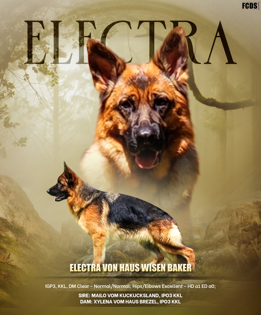 Electra obtained the highest level IPO3 working title, official breed survey KKL.