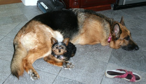Mara is a certified medical alert service dog and lives inside the home with our family and other dogs