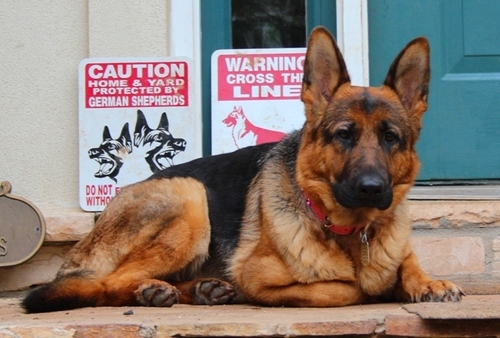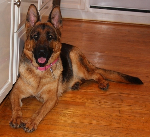 Mara is a certified medical alert service dog and lives inside the home with our family and other dogs